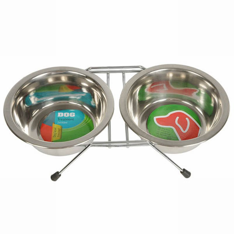 Kutya-etetőtál szett, dupla álványos, 2 x 550ml